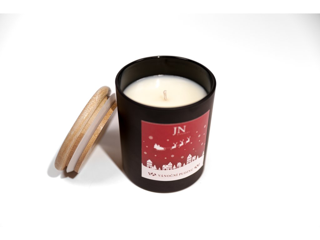 Naše vánoční limitovaná edice v černém provedení s bavlněným knotem. Vánoční puding je lahodná vůně vánočního koření, ovoce a jemné vanilky, která dokonale evokuje kouzlo Vánoc.